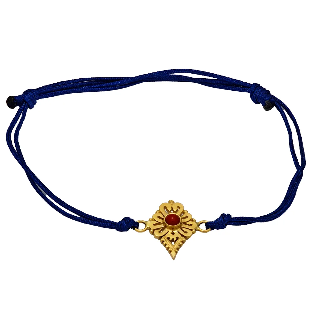 Bransoletka sznurkowa z zawieszką złotą parzenicą. Wykonana ręcznie z najwyższej jakości żółtego złota próby 585 oraz najwyższej jakości i gatunku korala naturalnego. Tworzony z pasją i zamiłowaniem do biżuterii góralskiej.