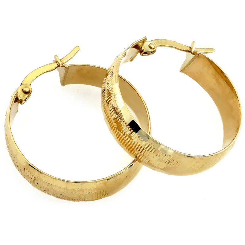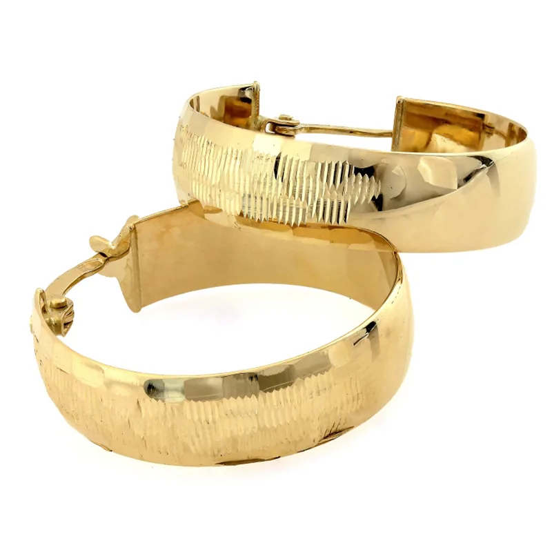 Kolczyki złote koła szerokie błyszczące 24mm 375 to elegancka i ponadczasowa biżuteria, wykonana z wysokiej jakości żółtego złota próby 375. Ich klasyczny okrągły kształt i szeroki profil nadają im wyjątkowego charakteru, podkreślając szyk i elegancję.