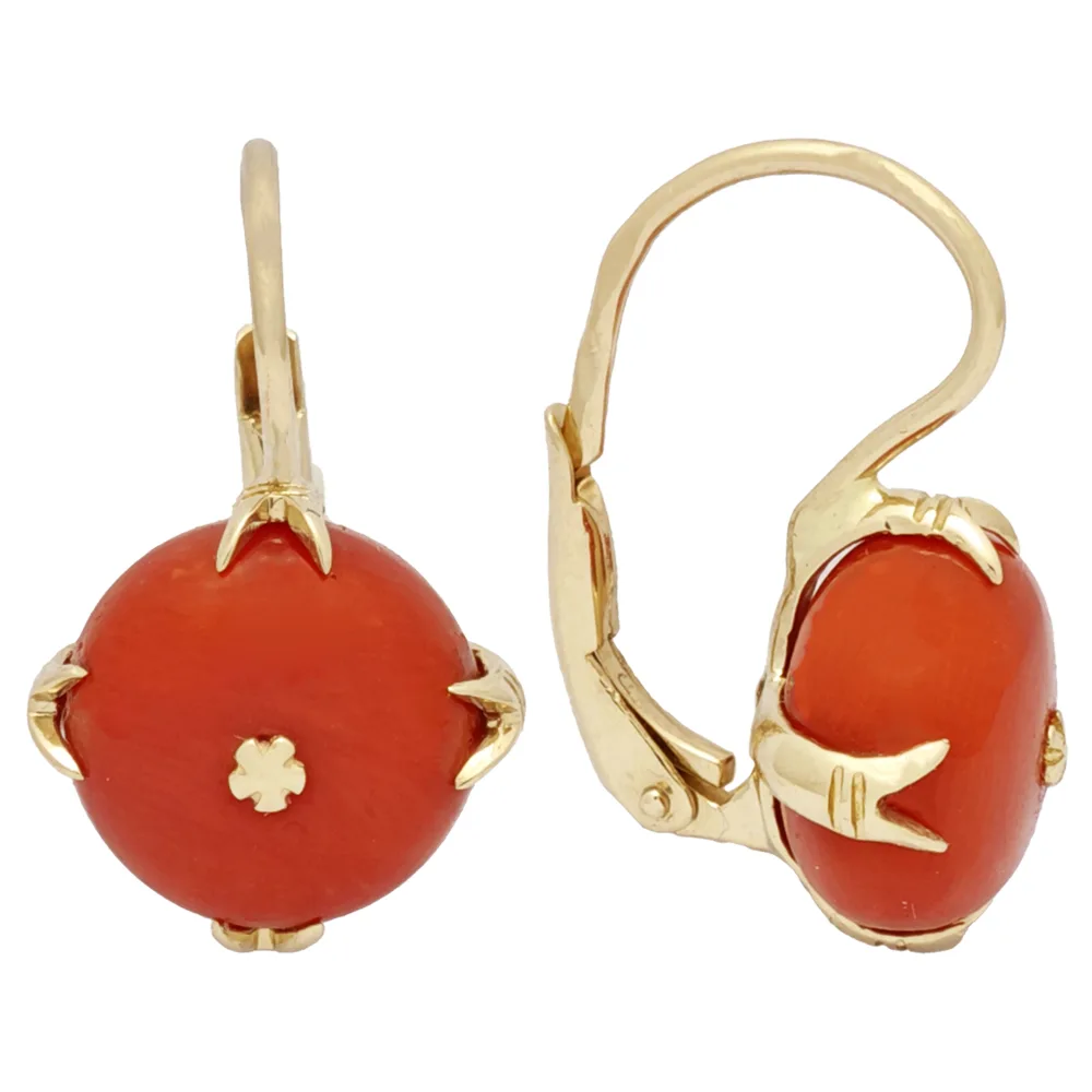 Kolczyki złote wykonane ręcznie z najwyższej jakości żółtego złota próby 585 oraz najwyższej jakości i gatunku korala naturalnego. Tworzony z pasją i zamiłowaniem do biżuterii góralskiej.