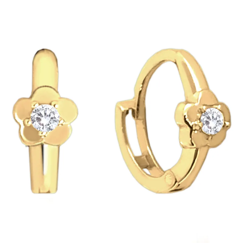 Kolczyki złote z kwiatami i cyrkoniami 585 to urocza biżuteria o delikatnym i dziewczęcym charakterze. Wykonane z 14-karatowego złota (próba 585), zachwycają subtelnym motywem kwiatka z błyszczącą białą cyrkonią w centralnej części. To doskonały wybór dla kobiet ceniących klasyczną elegancję i subtelny blask.