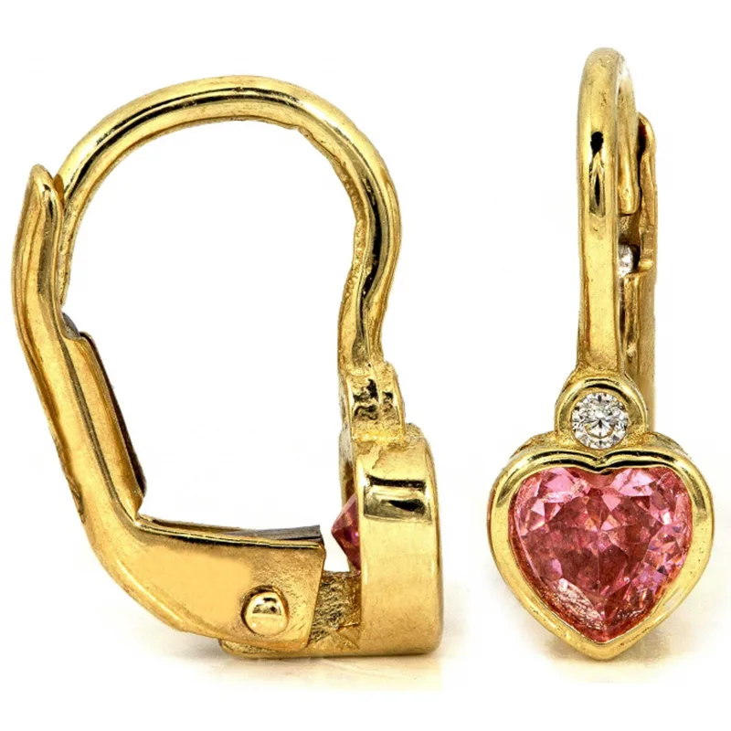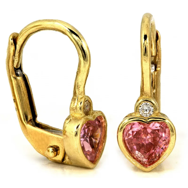 Kolczyki są ozdobione różowymi cyrkoniami, które dodają im blasku i podkreślają ich romantyczny charakter. Praktyczne angielskie zapięcie zapewnia wygodę oraz bezpieczeństwo noszenia, sprawiając, że są idealne zarówno dla dorosłych, jak i dla dzieci.