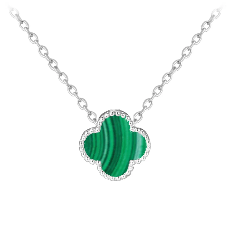 Naszyjnik srebrny koniczyna z malachitem to stylowy i elegancki dodatek, który łączy ponadczasowe piękno z nowoczesnym designem. Wykonany z rodowanego srebra próby 925, wyróżnia się wysoką jakością i subtelnym blaskiem.