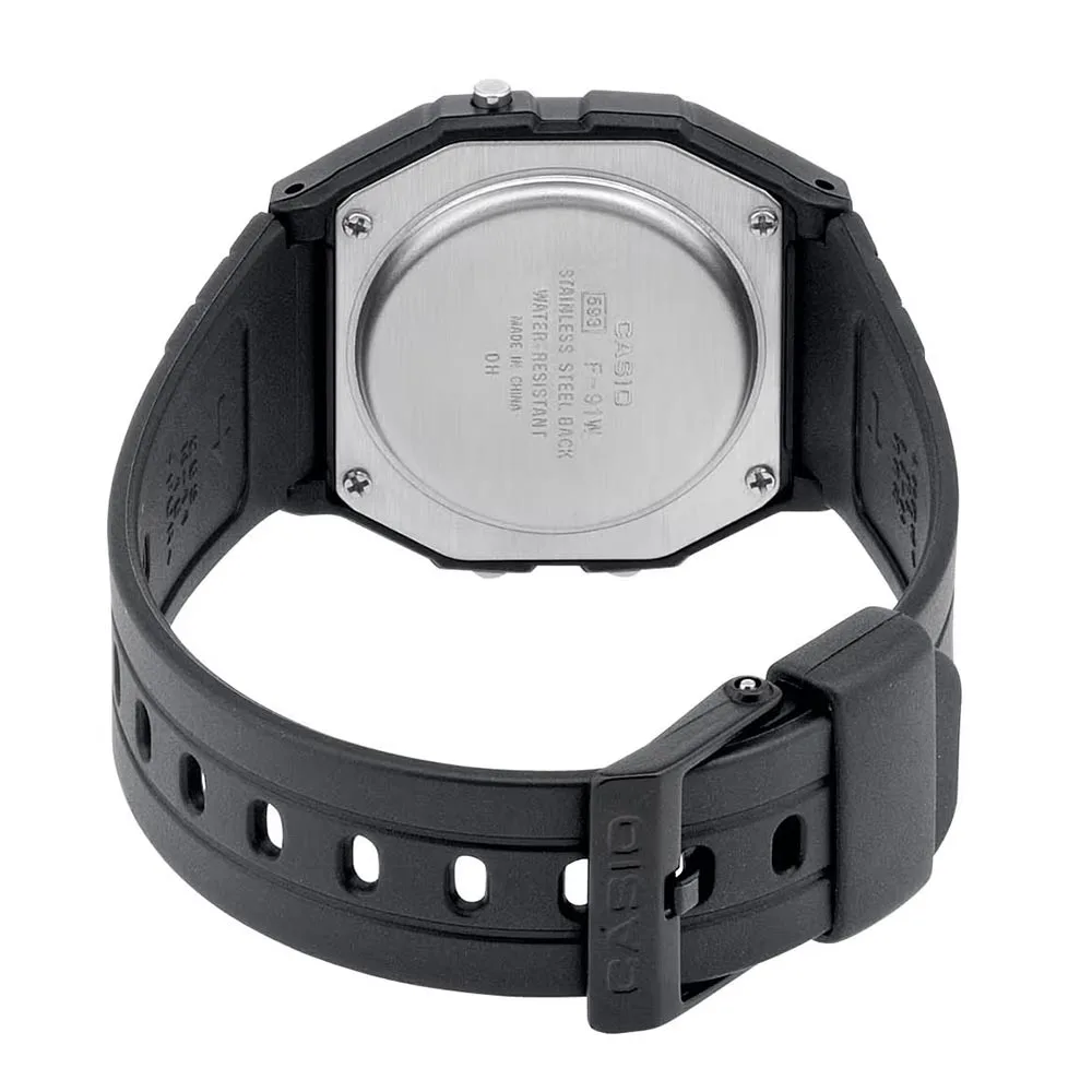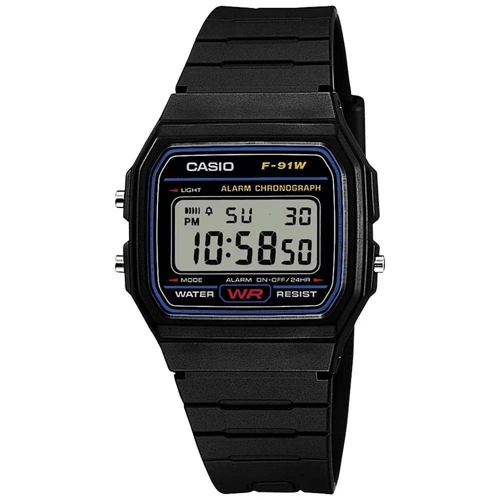 Zegarek męski Casio F-91W-1YEG Digital to kultowy model, który łączy prostotę z niezawodnością. Lekka konstrukcja oraz czytelny wyświetlacz sprawiają, że zegarek doskonale sprawdza się w codziennym użytkowaniu.