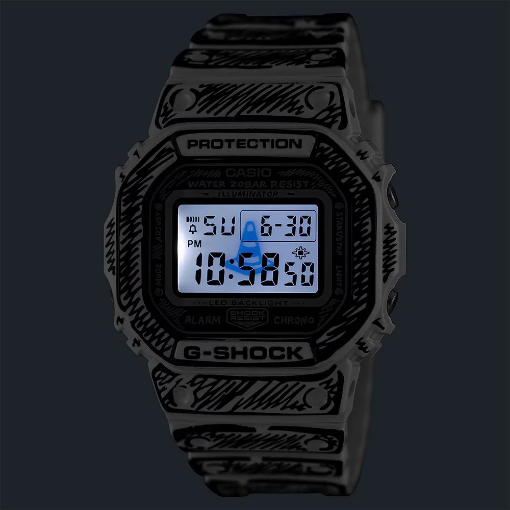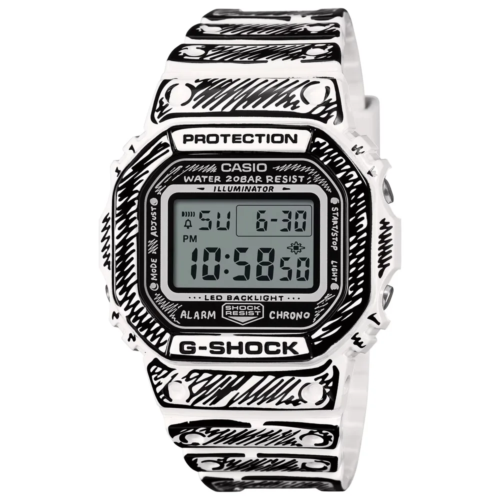 Zegarek G-SHOCK DW-5600JV-7ER Joshua Vides Edycja Specjalna to wyjątkowe połączenie kultowej wytrzymałości G-SHOCK z artystycznym designem. Model powstał we współpracy z artystą Joshua Vides i wyróżnia się charakterystyczną, czarno-białą stylistyką inspirowaną rysunkiem komiksowym.