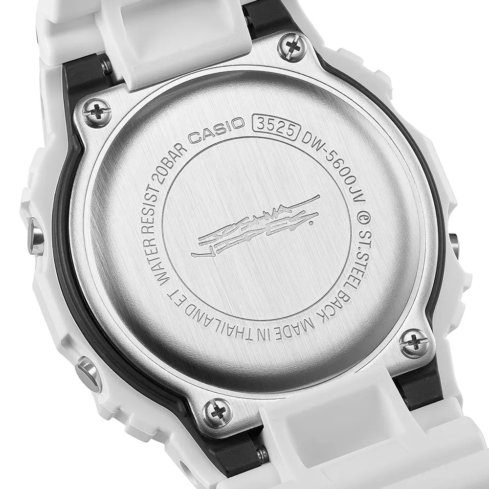 Zegarek Casio G-SHOCK DW-5600JV-7ER posiada podświetlenie LED Super Illuminator, wysoką wodoszczelność oraz rozbudowane funkcje cyfrowe. Dzięki temu sprawdzi się zarówno w codziennym użytkowaniu, jak i jako wyjątkowy model kolekcjonerski.