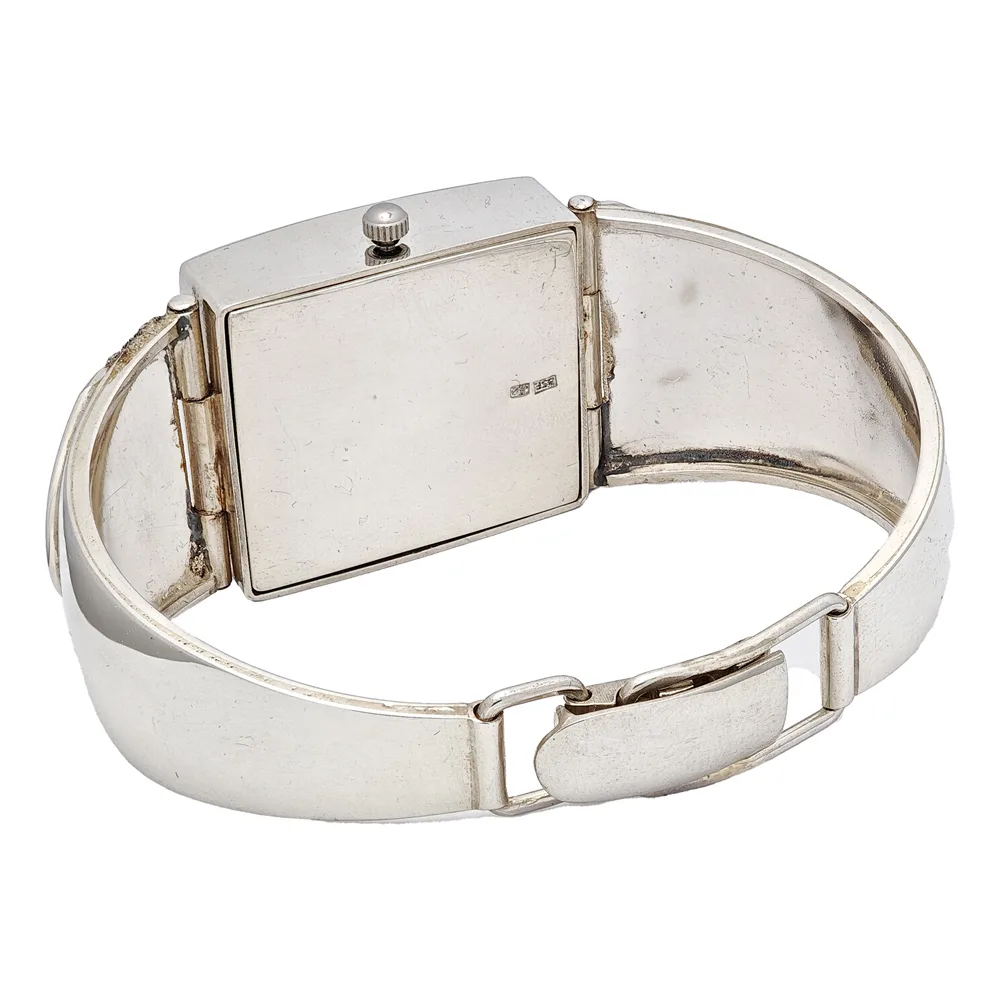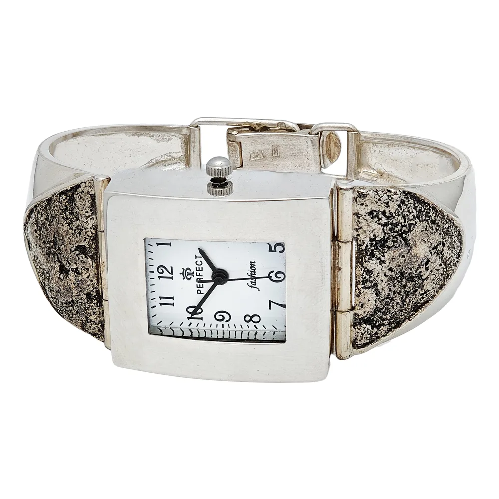 Zegarek Srebrny Prostokątny Jasna Tarcza z zdobieniami to wyjątkowy czasomierz wykonany z srebra najwyższej próby 925. Projektanci ozdobili jego bransoletę chropowatymi strukturami, które przyciągają uwagę i dodają zegarkowi artystycznego charakteru.
