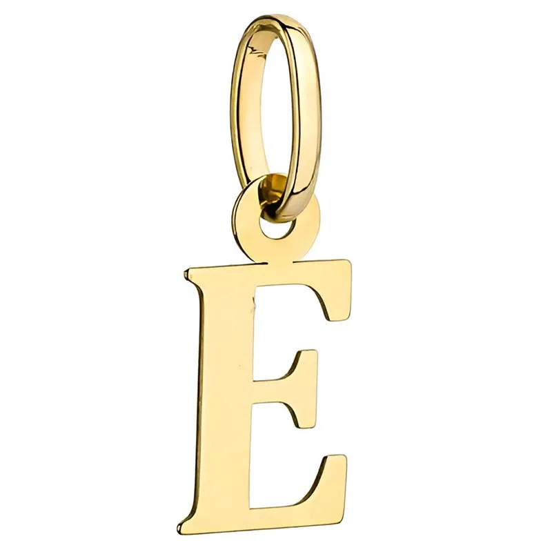 Zawieszka z literą E ma uniwersalny design, który pasuje do różnych łańcuszków. Świetnie komponuje się z delikatnymi i masywniejszymi splotami, podkreślając indywidualny styl.