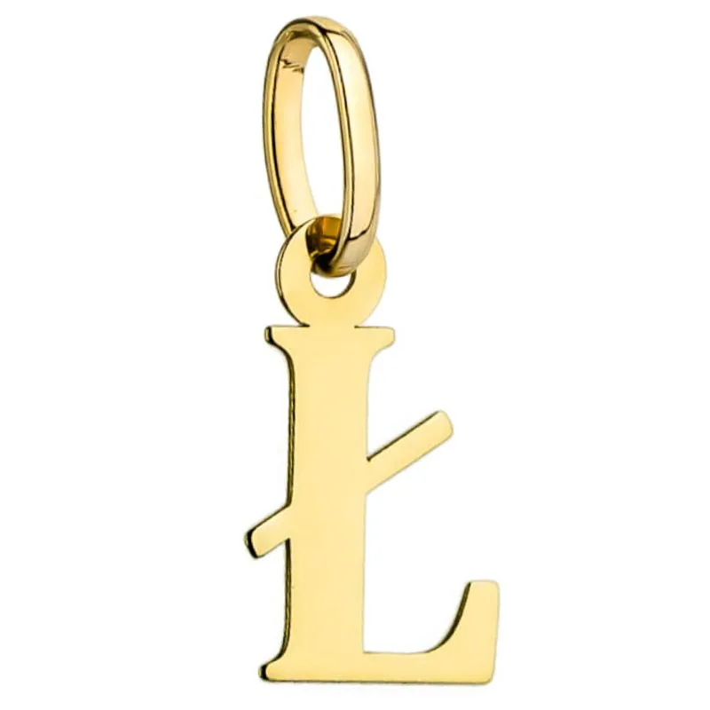 Zawieszka z literą Ł ma uniwersalny design, który pasuje do różnych łańcuszków. Świetnie komponuje się z delikatnymi i masywniejszymi splotami, podkreślając indywidualny styl.