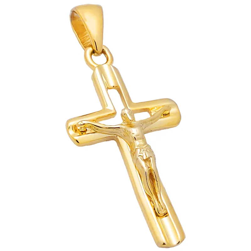 Na froncie zawieszki znajduje się postać Jezusa Chrystusa na krzyżu, symbolizująca poświęcenie i odkupienie. Dzięki ażurowej konstrukcji krzyżyk jest lekki, a jednocześnie pełen głębi i znaczenia duchowego. To wyjątkowy dodatek zarówno do codziennych stylizacji, jak i ważnych uroczystości religijnych.