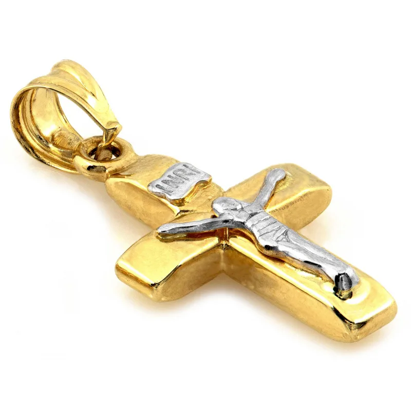 Złoty Krzyżyk z wizerunkiem Jezusa dwukolorowy 585 to wyjątkowa biżuteria o głębokim znaczeniu religijnym, łącząca klasyczną formę z eleganckim wykończeniem. Wykonany z wysokiej jakości złota próby 585, łączy w sobie ciepły odcień żółtego złota z chłodnym akcentem białego złota, które podkreśla detale postaci Chrystusa.