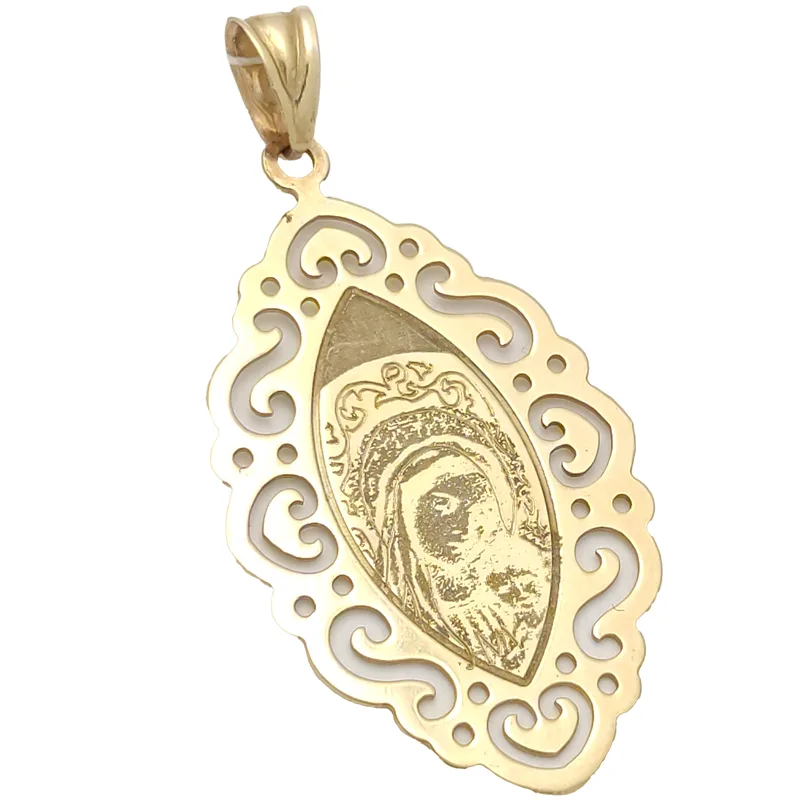 Złoty medalik Matka Boska z Dzieciątkiem to wyjątkowy symbol wiary, wykonany z wysokiej jakości złota próby 585. Jego ażurowa, misternie zdobiona oprawa nadaje mu niepowtarzalny wygląd, a precyzyjnie wykonany wizerunek Matki Boskiej z Dzieciątkiem podkreśla duchowe znaczenie medalika. To doskonały wybór na chrzest, komunię czy bierzmowanie.