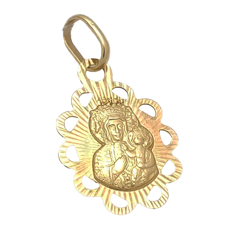 Złoty medalik Matka Boża Częstochowska to piękny symbol wiary, wykonany z wysokiej jakości złota próby 585. Otwarta, ażurowa konstrukcja nadaje mu lekkości i elegancji, podkreślając wyjątkowy charakter wizerunku Matki Bożej Częstochowskiej. To doskonały wybór na prezent z okazji chrztu, komunii czy bierzmowania.