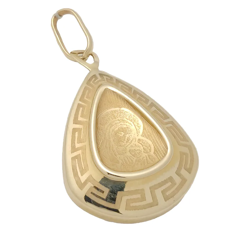 Złoty medalik Matka Boża Częstochowska to elegancki symbol wiary, wykonany z wysokiej jakości złota próby 585. Jego unikalny kształt łzy, ozdobiony precyzyjnym grawerem w stylu greckiego meandra, nadaje mu wyjątkowy i ponadczasowy charakter. W centrum medalika znajduje się delikatnie zdobiony wizerunek Matki Bożej Częstochowskiej, podkreślający jego duchowe znaczenie.